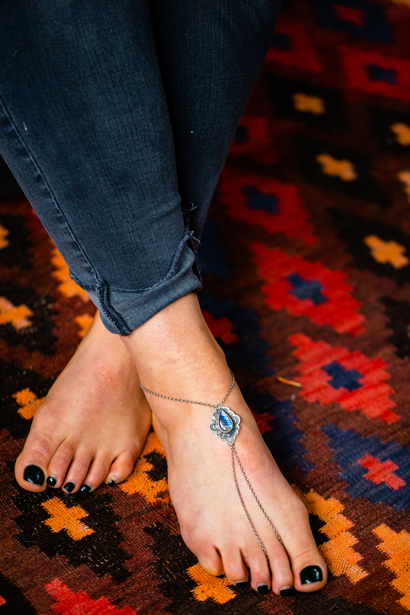 The pendant consists of flashing labradorite, surrounded by stamped sterling detail and a scalloped edge. This piece is adjustable and one size fits most. That being said, if this item is purchased and needs to be sized differently I am happy to do so! All components are sterling silver.