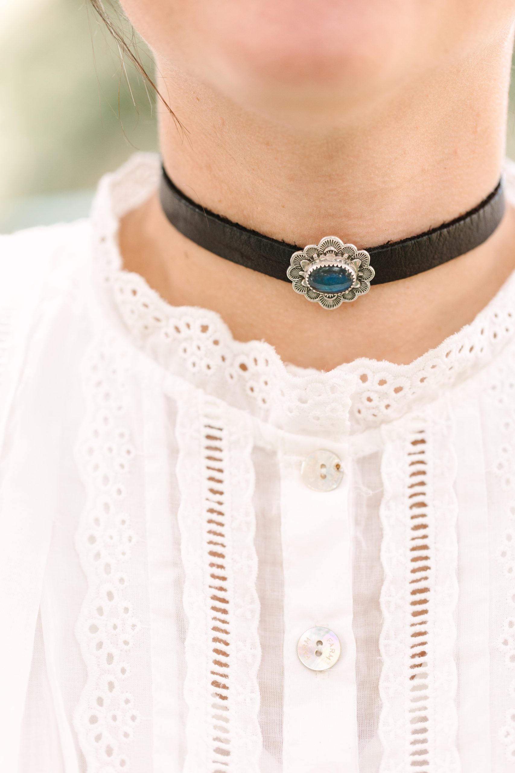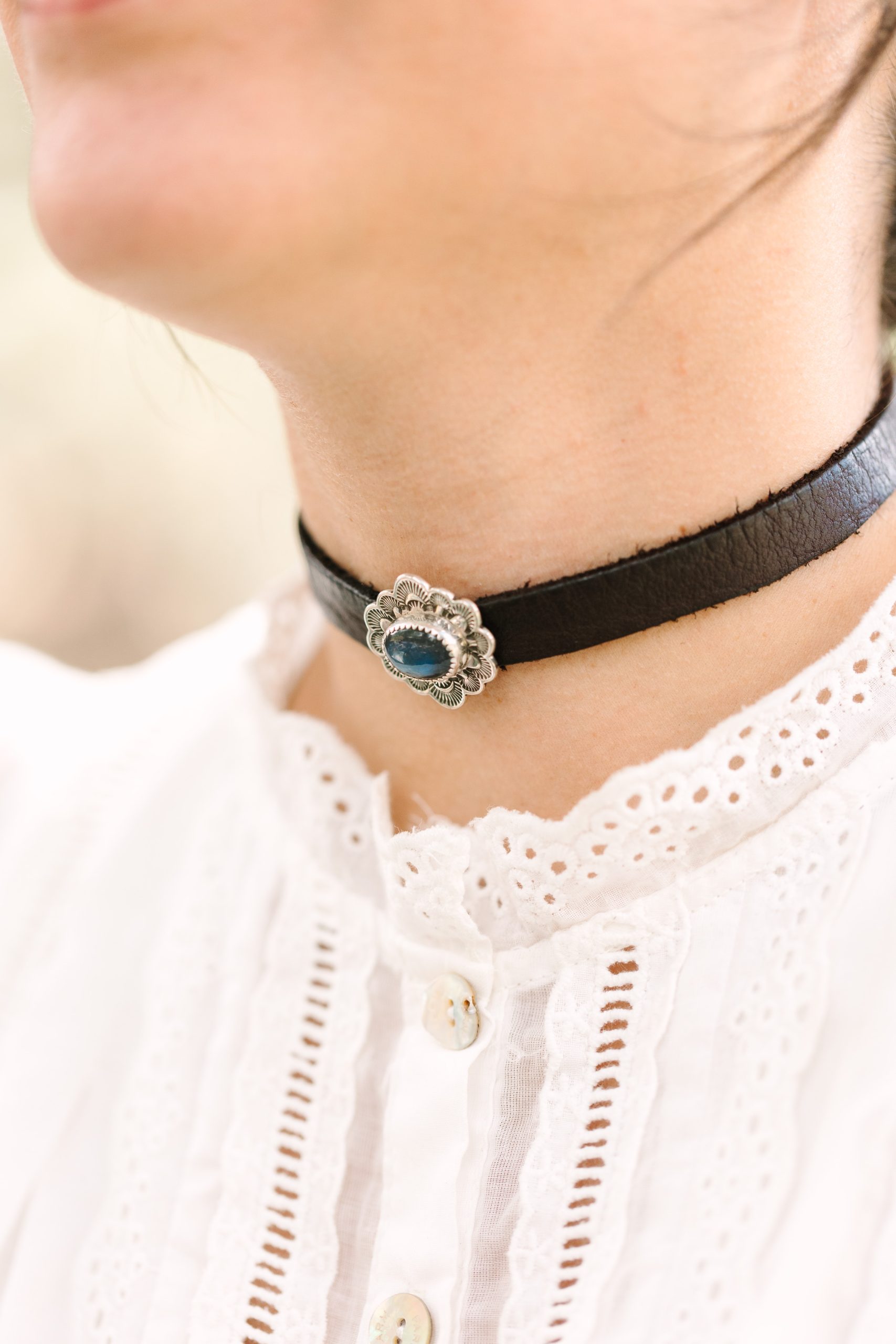 There’s something special about the combination leather and sterling silver. Put it in choker form and you have a piece that invokes a style and charm that is deeply western.