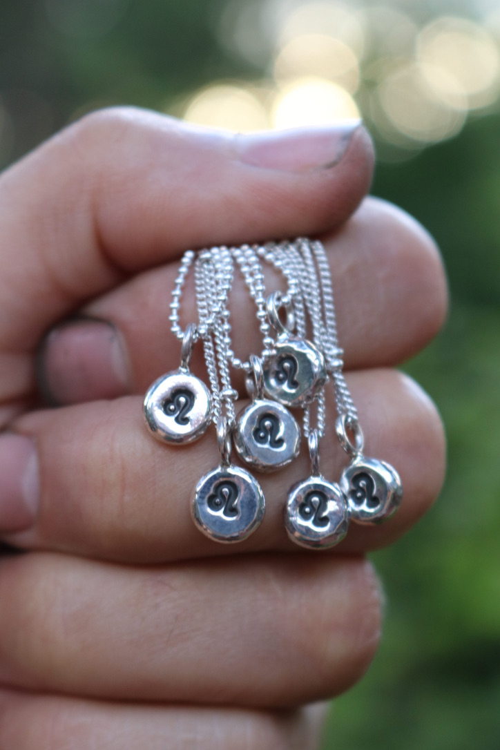 Hand formed from recycled silver scraps, these sterling Leo pendants are a perfect reminder of subtle strength and rebirth. The pendant measures 1/2″ tall including the ring and 1/4″ wide. They are available on a 16 or 18″ chain, just note your chain preference at checkout.