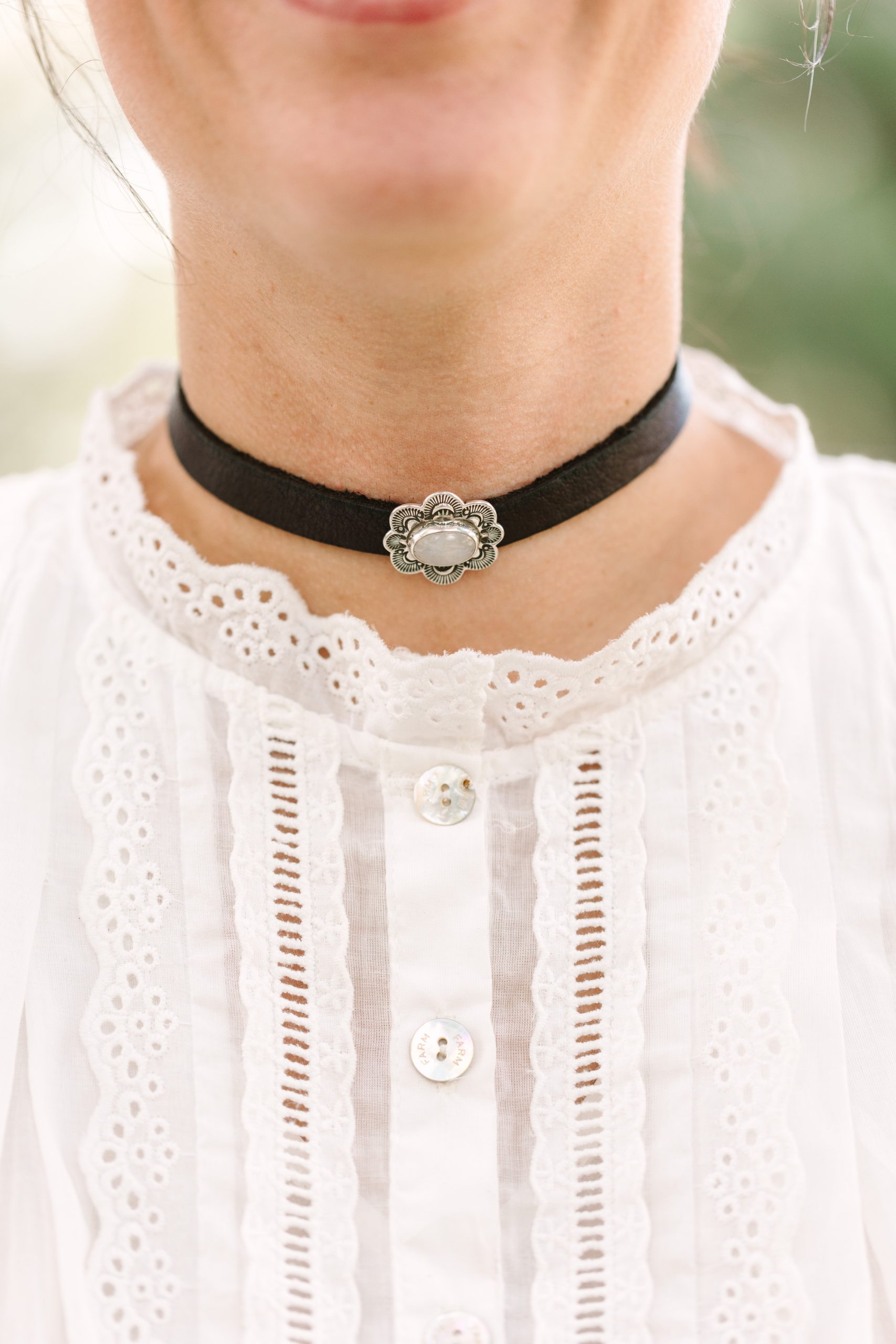 There’s something special about the combination leather and sterling silver. Put it in choker form and you have a piece that invokes a style and charm that is deeply western.
