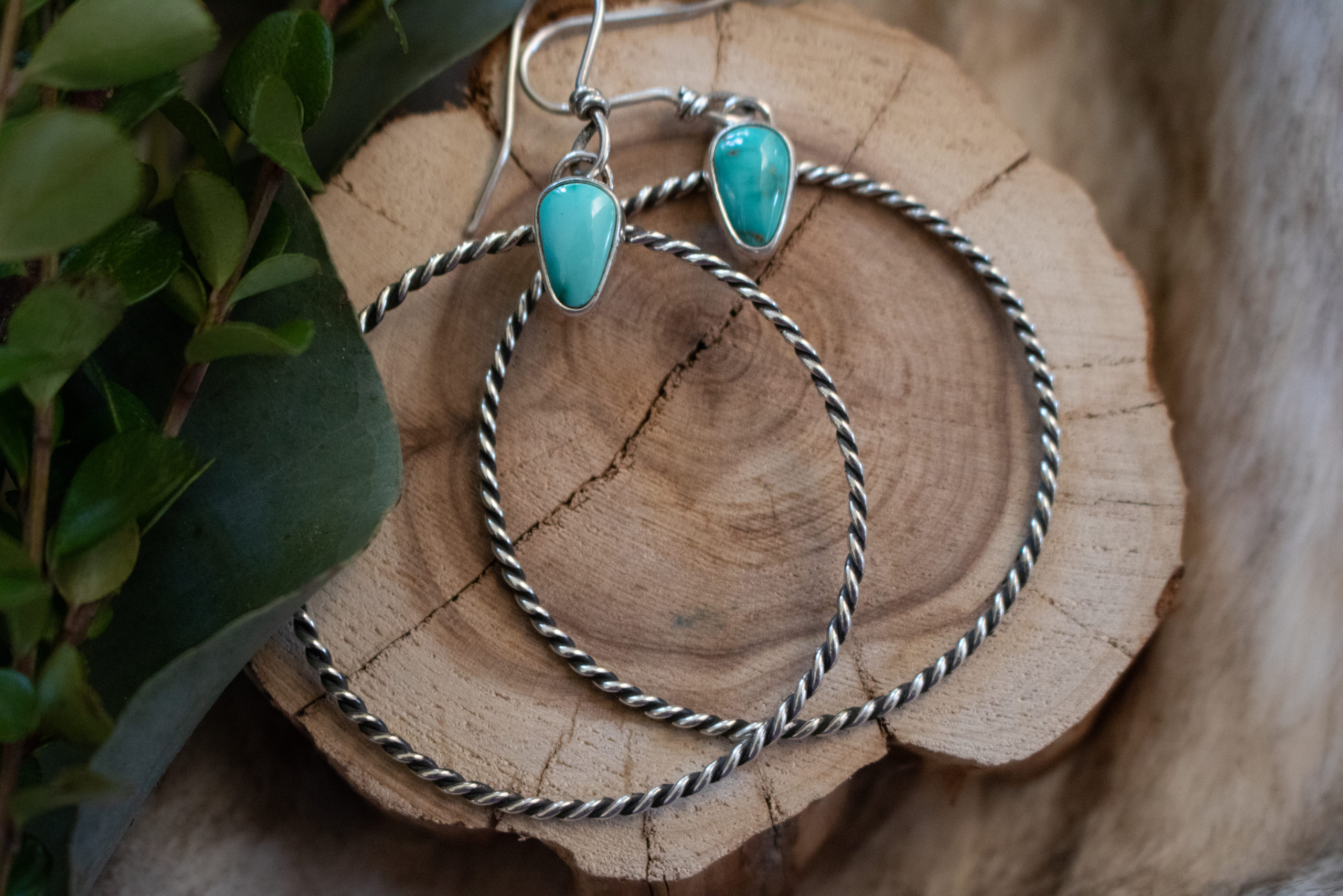 One of the most coveted R&R designs, Dolly Hoops are inspired by the queen of all things confident, classic and unapologetically feminine. This pair has been made with handtwisted sterling wire and natural royston turquoise. 3″ from the top of the earwire to the bottom of the hoop. Stunning and perfect with any outfit, Dolly’s are a staple in any jewelry collection.